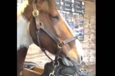 このニャンコ、馬から解放された後は、グルーミングにかなりの時間を費やすことになりそうですね。さて、猫と馬のおもしろ動画がもっと見たい皆さんは、こちらをどうぞ!